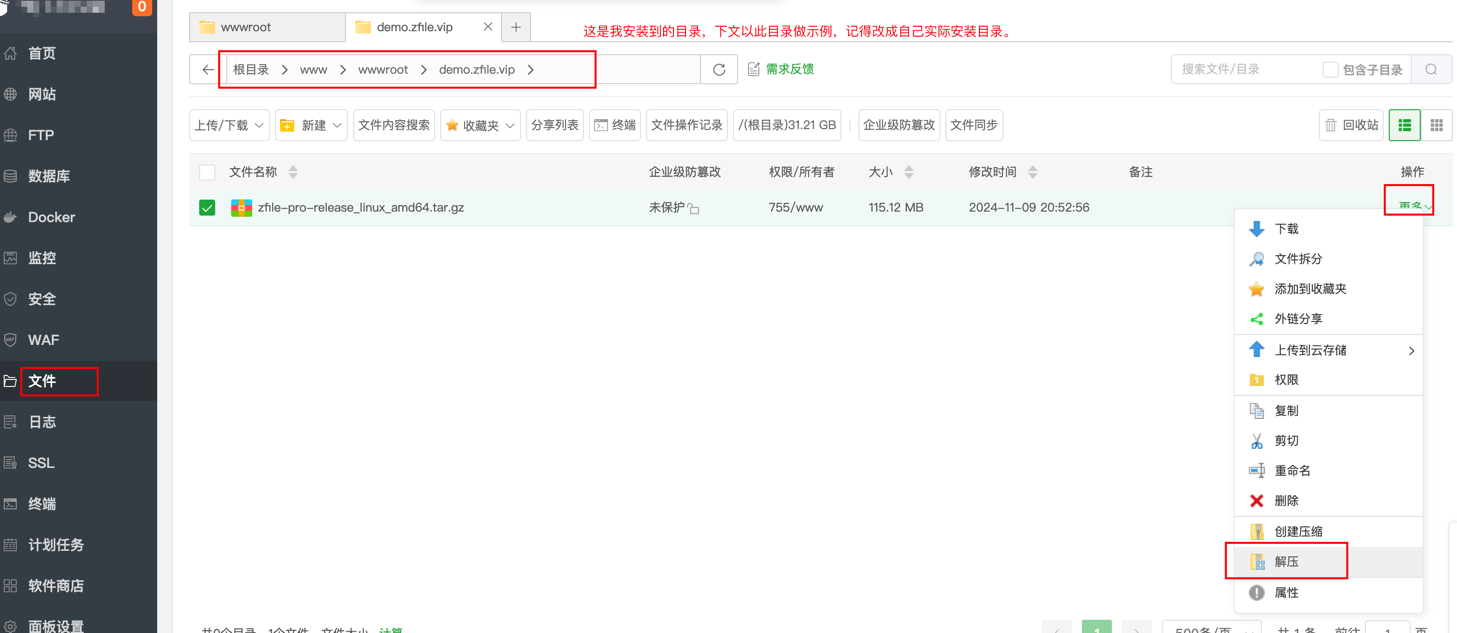 假如你 解压路径/www/wwwroot/demo.zfile.vip