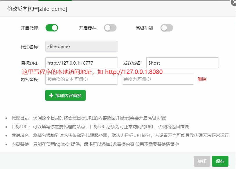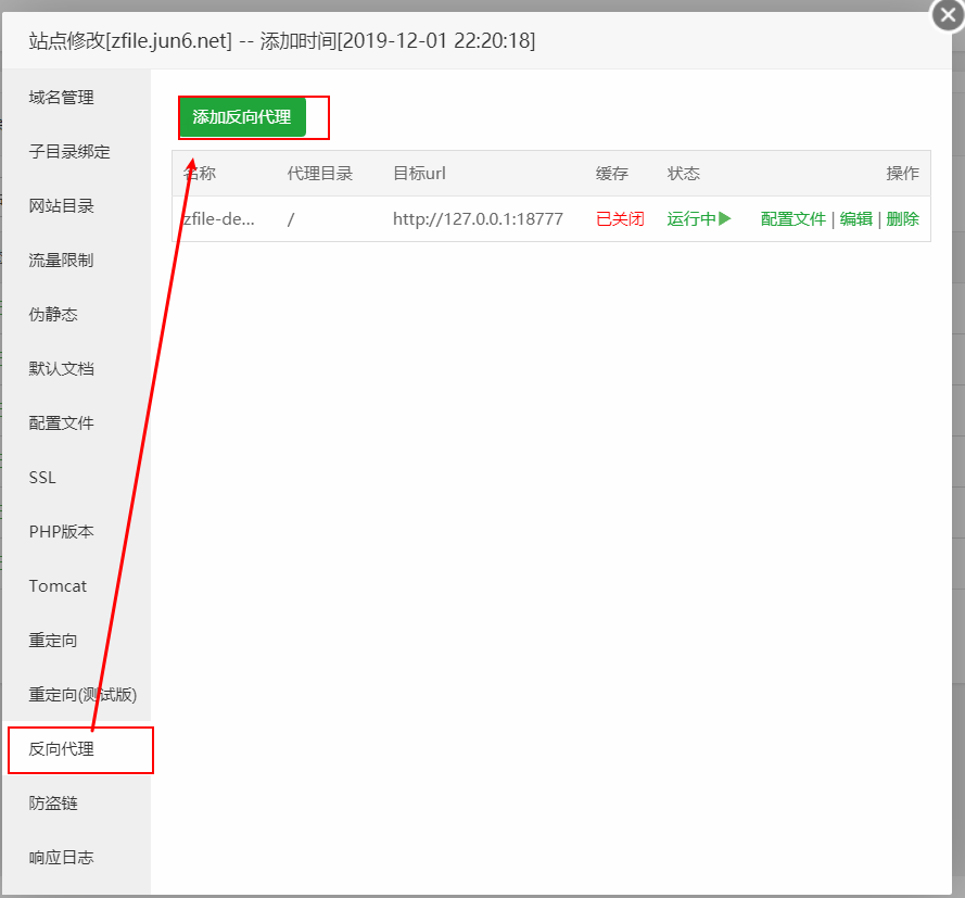 首先将域名 A 记录解析到服务器 IP, 这是即可通过 域名:端口 访问,如果不想带端口,可使用 nginxcaddy 等工具反向代理. 以下以宝塔面板为例: